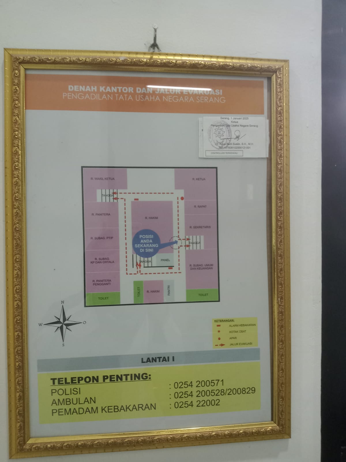 - prosedur dan tempat evakuasi apabila terjadi keadaan darurat;